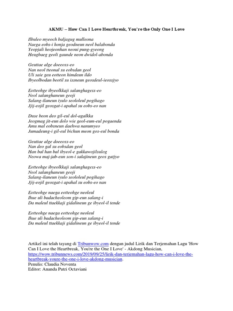 All rights administered by yg entertainmentartist : The song topped all seven major music streaming platforms in south korea (melon, genie, bugs, mnet, naver, soribada, and flo) upon its release as a single on the 25th of september 2019. 25,705 views, added to favorites 316 times. Don't forget to subscribe our channel.all rights administered by yg entertainment we. Apr 05, 2020 · how can i love the heartbreak youre the one i love chords by akmu. Sailingall copyright ⓒ yg entertainment inc. How can i love the heartbreak, you're the one i love (어떻게 이별까지 사랑하겠어, 널 사랑하는 거지) is the lead single off of their third studio album. (on behalf of yg entertainment); Ilbureo myeoch baljaguk mulleona / naega. How can i love the heartbreak, you're the one i love (어떻게 이별까지 사랑하겠어, 널 사랑하는 거지) album: This song is so beautiful and heart. Please like and share this video!